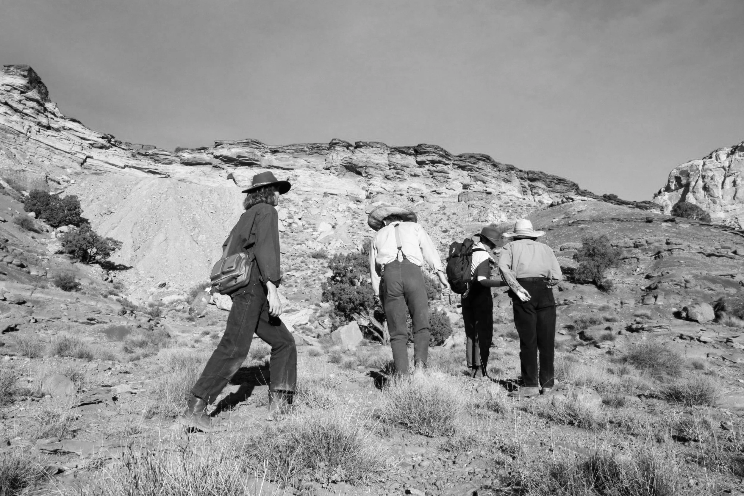Kevin Howard, Will Kershner, Elpitha Tsoutsounakis, and Summer Orr at the Temple Mountain Survey. Photo by Emily Arnsten. 2022