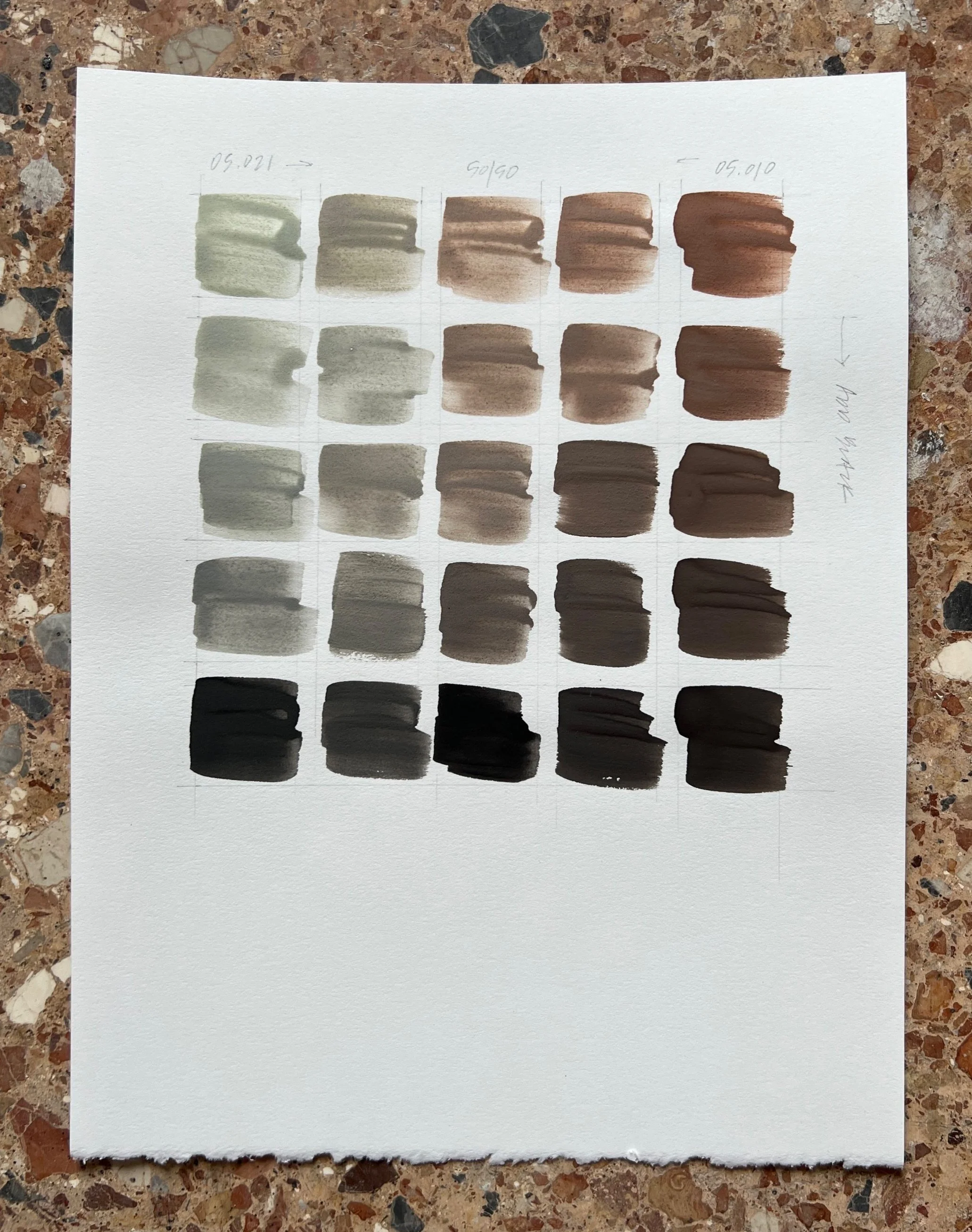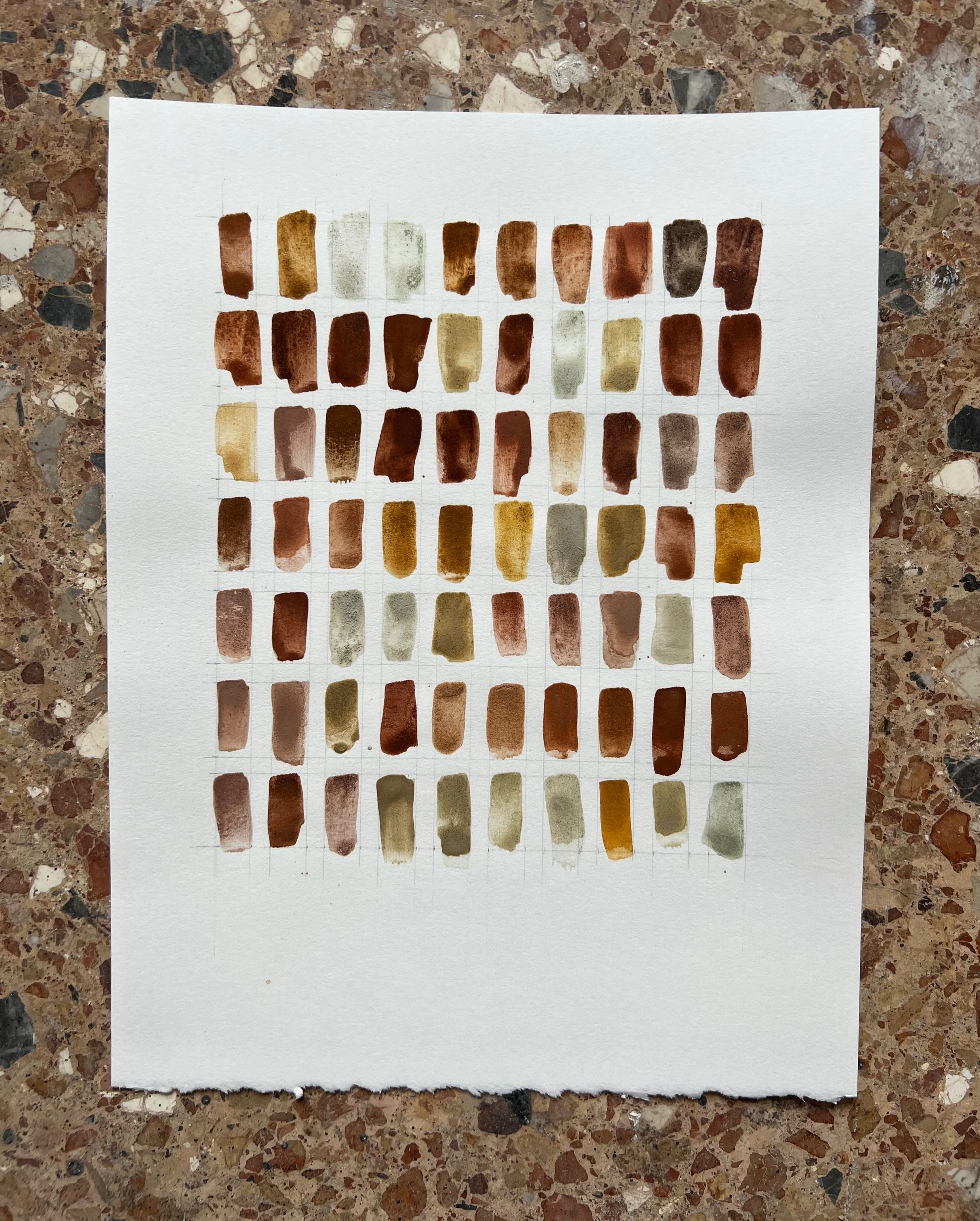 PLATE IX—OCHRE SWATCH INDEX—position in the index above corresponds to the position of jars in the opposite wooden structure.